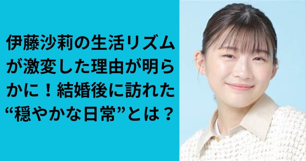 多くのドラマや映画で圧倒的な存在感を放つ演技派女優・伊藤沙莉さん。 そんな伊藤沙莉さんですが、最近「生活リズムが大きく変わった」と話題になっていることをご存じでしょう か。 結婚という人生の大きな転機を迎えた今、どのような変化が彼女の日常に... -