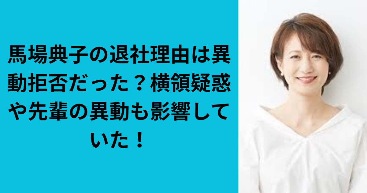 馬場典子さんの退社理由は、公式には「新たな挑戦」とされていますが、実際には異動拒否、横領疑惑の報