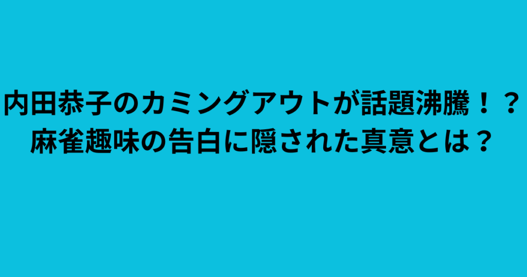 内田恭子のカミングアウトが話題沸騰!? 麻雀趣味の告白に隠された真意とは?