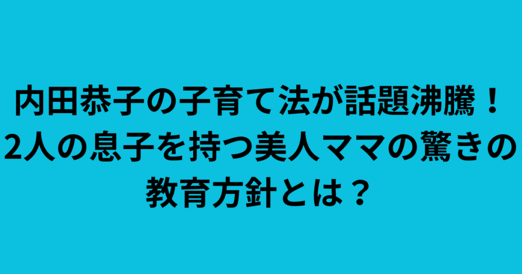 永遠の美少女として知られる内田恭子さん。 そんな内田恭子さんですが、子育てについて気になるところではないでしょうか。 内田恭子さんには、2人の男の子がいるそうです。 そんな内田恭子さんですが、どのような子育てをしているのでしょうか。 内田恭子...