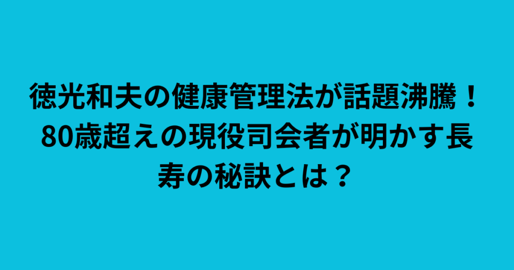 徳光和夫の健康管理法が話題沸騰! 80歳超えの現役司会者が明かす長寿の秘訣とは?