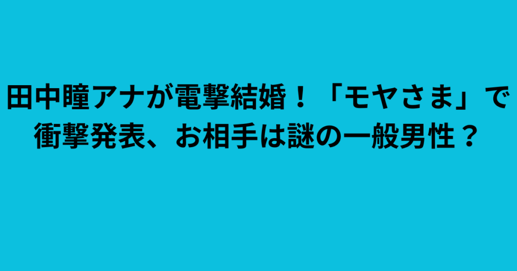 田中瞳アナが電撃結婚!「モヤさま」で衝撃発表、お相手は謎の一般男性?