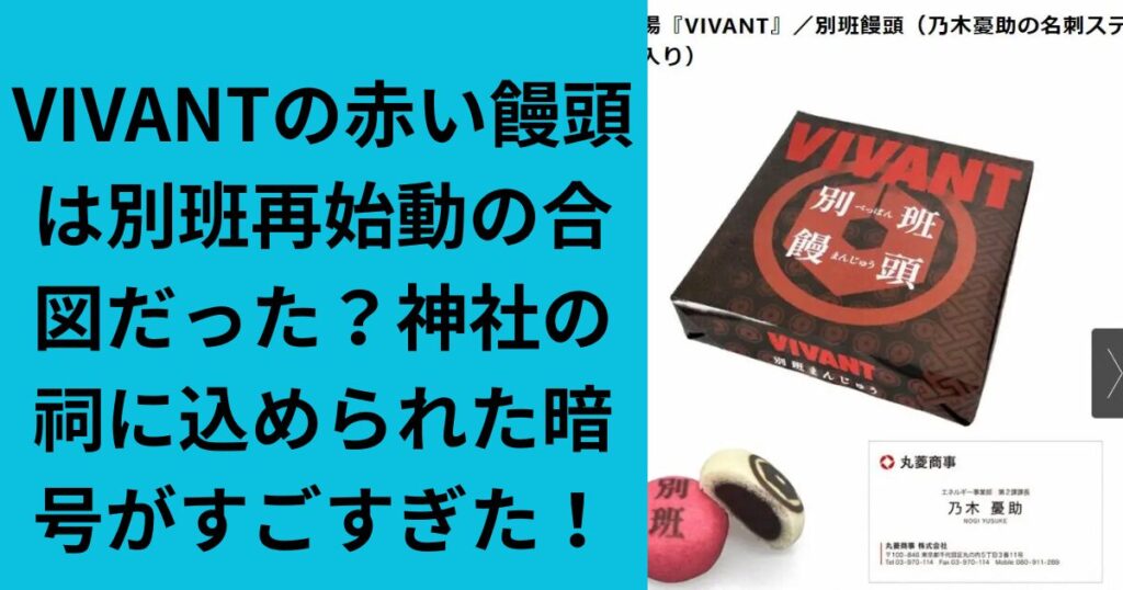 話題のドラマVIVANTの最終回に登場した「赤い饅頭」が視聴者の間で大きな反響を呼んでいます。 何気ない小道具に見えるその饅頭には、驚くべき暗号や伏線、そして続編へのヒントが込められていたのです。 この記事では、赤い饅頭の色や数、置かれた神社(...