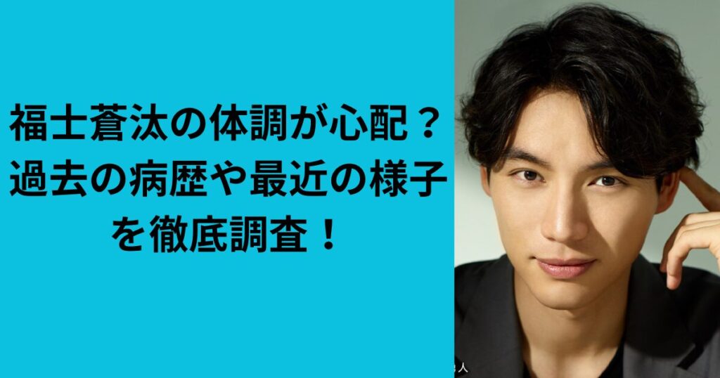 俳優として数々のドラマや映画で活躍し、その端正なルックスと演技力で多くのファンを魅了してきた福士蒼 汰さん。 そんな福士蒼汰さんですが、最近メディアで見かけないという声や、体調を心配する声が一部ネット上で見ら れています。 過去には新型コロ...