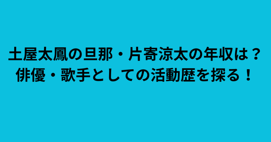 人気女優・土屋太鳳さんの旦那として注目を集める片寄涼太さん。 そんな片寄涼太さんですが、俳優や歌手としてどのような活動をしてきたのでしょうか。 今回は、片寄涼太さんの俳優・歌手としての活動歴や、気になる年収について詳しくお伝えします。 片寄... -