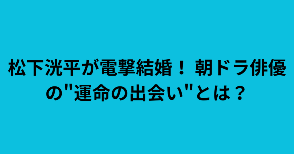 松下洸平が電撃結婚! 朝ドラ俳優の”運命の出会い”とは?