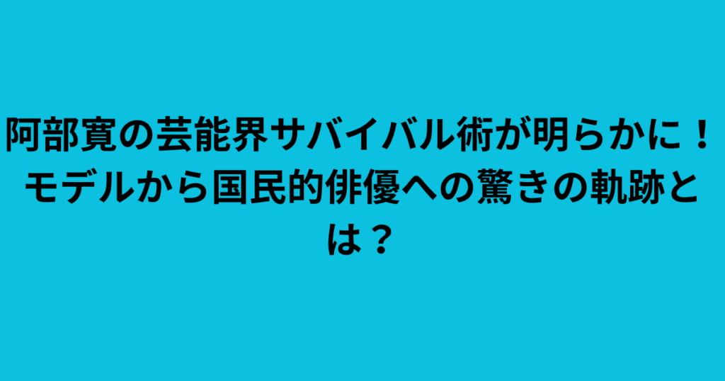 阿部寛の芸能界サバイバル術が明らかに! モデルから国民的俳優への驚きの軌跡とは?