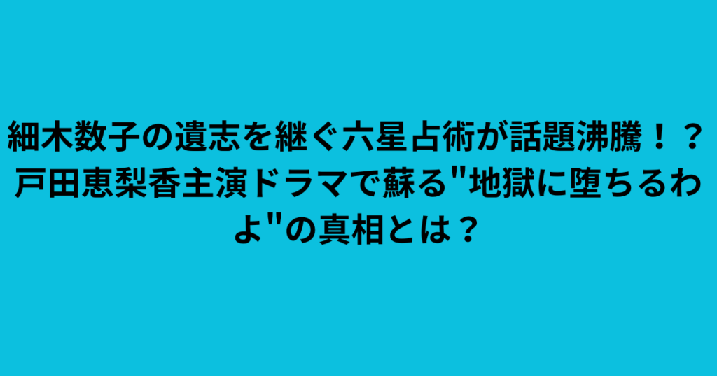 細木数子の遺志を継ぐ六星占術が話題沸騰!? 戸田恵梨香主演ドラマで蘇る”地獄に堕ちるわよ”の真相とは?