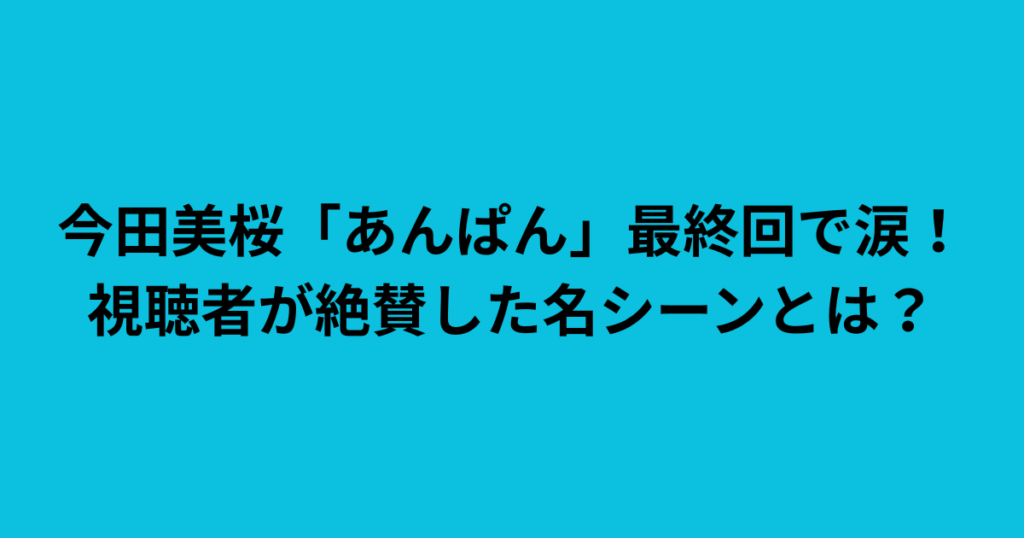 今田美桜「あんぱん」最終回で涙!視聴者が絶賛した名シーンとは?