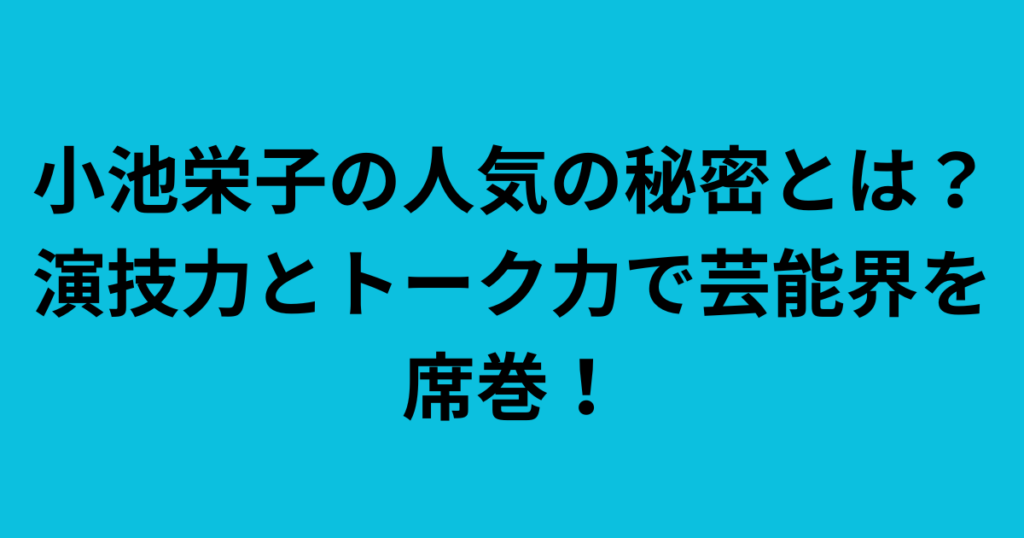 小池栄子の人気の秘密とは?演技力とトーク力で芸能界を席巻!