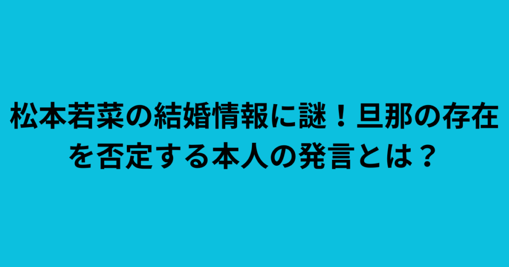 松本若菜の結婚情報に謎!旦那の存在を否定する本人の発言とは?