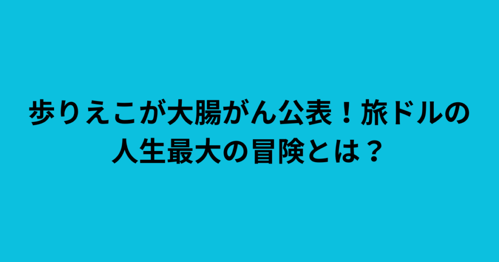 歩りえこが大腸がん公表!旅ドルの人生最大の冒険とは?