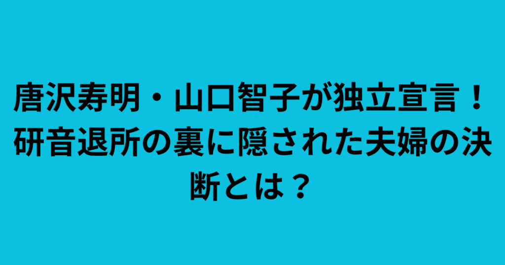 唐沢寿明・山口智子が独立宣言!研音退所の裏に隠された夫婦の決断とは?