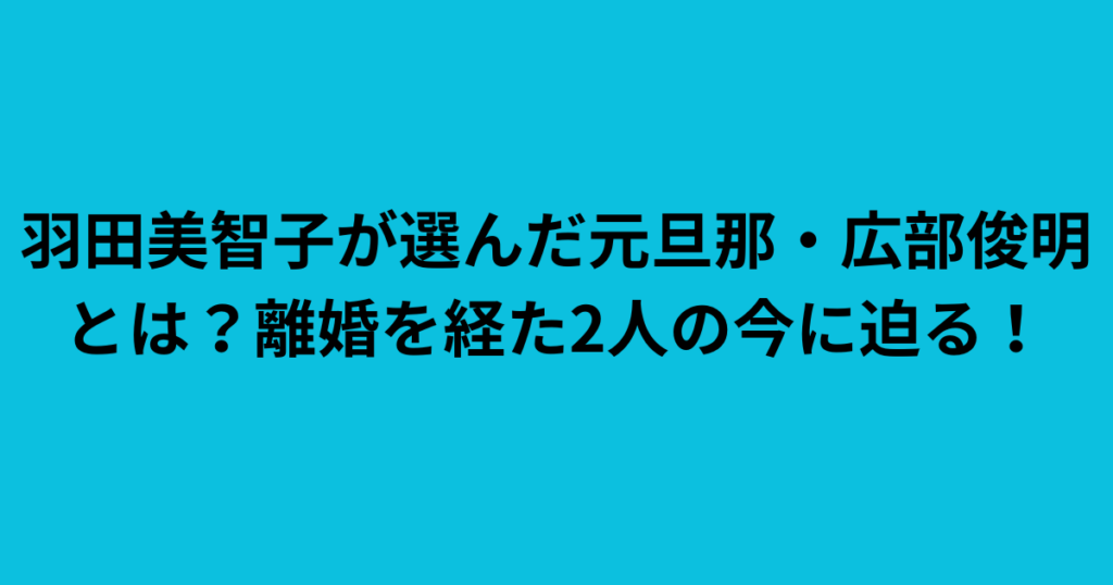 羽田美智子が選んだ元旦那・広部俊明とは?離婚を経た2人の今に迫る!