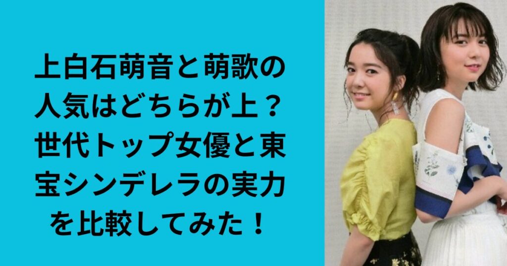 女優としても歌手としても第一線で活躍し、姉妹そろって芸能界で注目を集めている上白石萌音さんと萌歌さ ん。 そんな才能あふれる姉妹ですが、ネットでは「どっちが人気?」という声が多く見られます。 今回は上白石姉妹の人気・実績を徹底比較し、それぞ... -