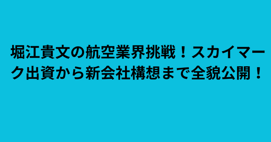 堀江貴文の航空業界挑戦!スカイマーク出資から新会社構想まで全貌公開!