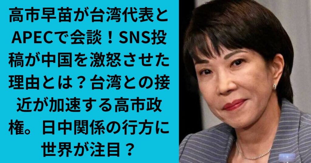 高市早苗が台湾代表とAPECで会談!SNS投稿が中国を激怒させた理由とは?台湾との接近が加速する高市政権。日中関係の行方に世界が注目?