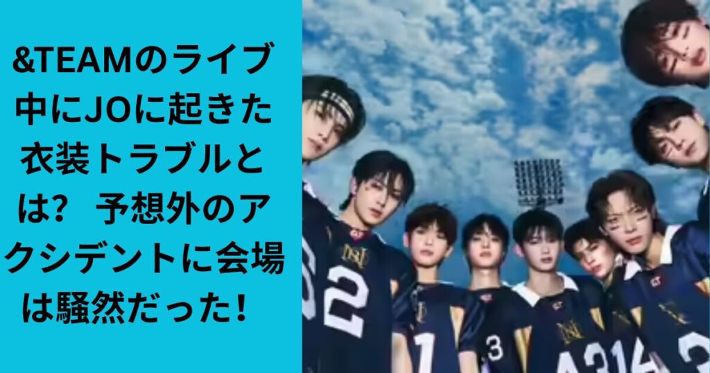 世界中で注目を集めるグローバルグループ「&TEAM」。 メンバーそれぞれが個性と魅力を放つ中、JOさんは高い表現力と安定した歌唱力でファンから熱い支持を受け ています。 そんなJOさんですが、最近行われたライブ中にちょっとした「衣装トラブル」が... -