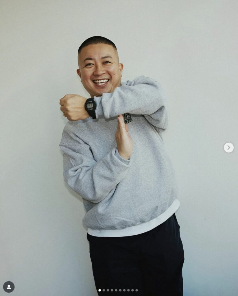- 相方の長田庄平さんと共に丸刈り姿で登場