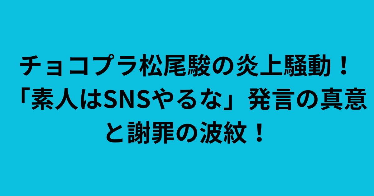 松尾駿さんの「素人はSNSやるな」発言は、大きな批判を浴び、炎上騒動に発展しました。