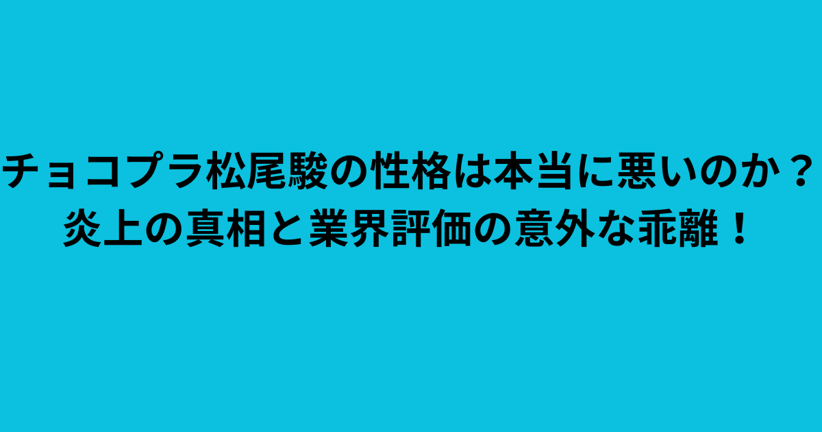 果たして、松尾駿さんの性格は本当に悪いのでしょうか?真相に迫ります。