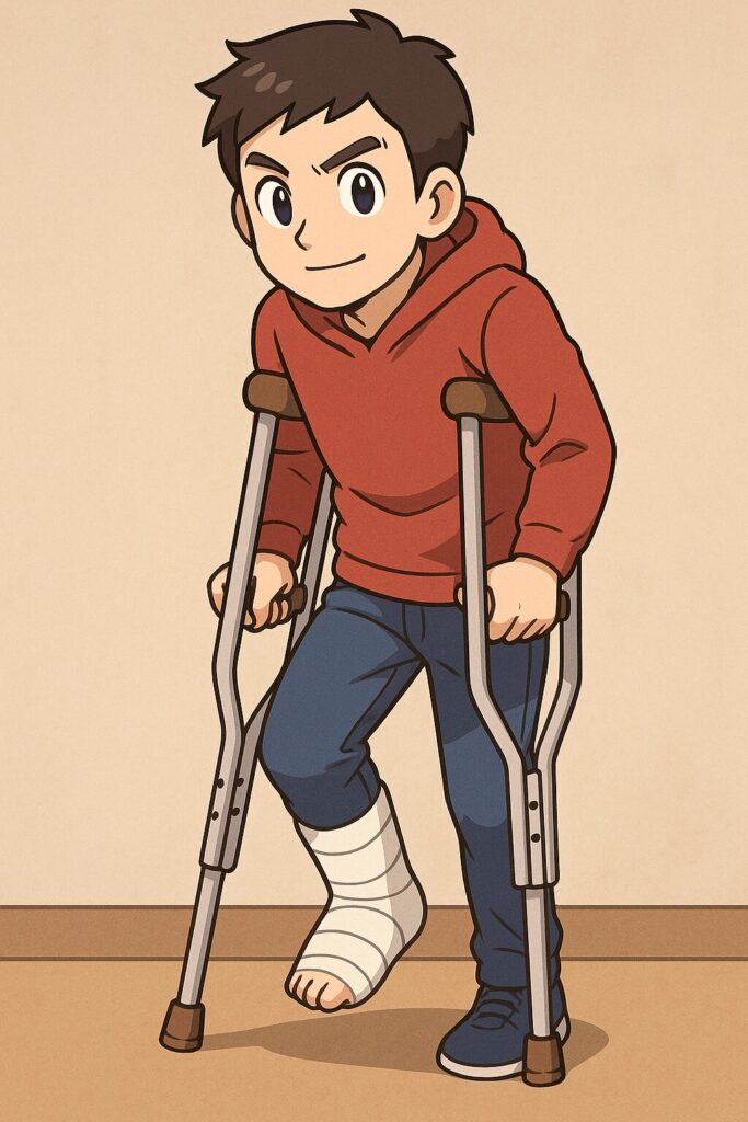 長田さんは現在、ギプス固定と松葉づえによるサポート生活を余儀なくされています。