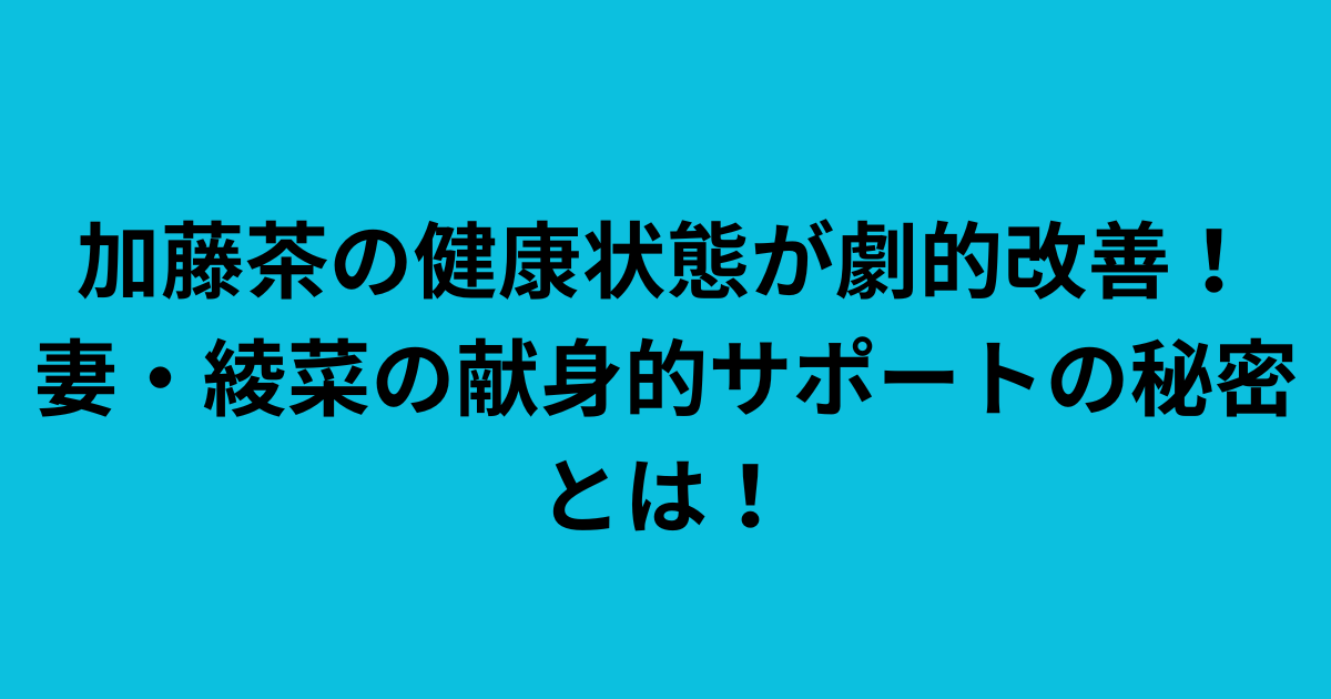 加藤茶さんの高血圧は、妻・綾菜さんの献身的なサポートにより、大幅に改善されました。