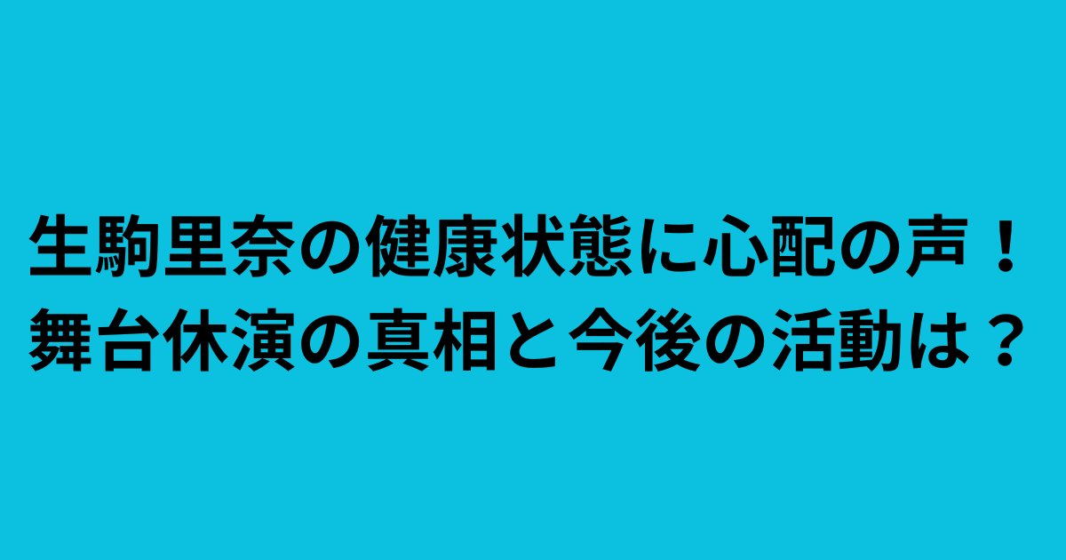 そんな生駒里奈さんですが、突然の舞台休演で健康状態に不安の声が上がっているのでしょうか。