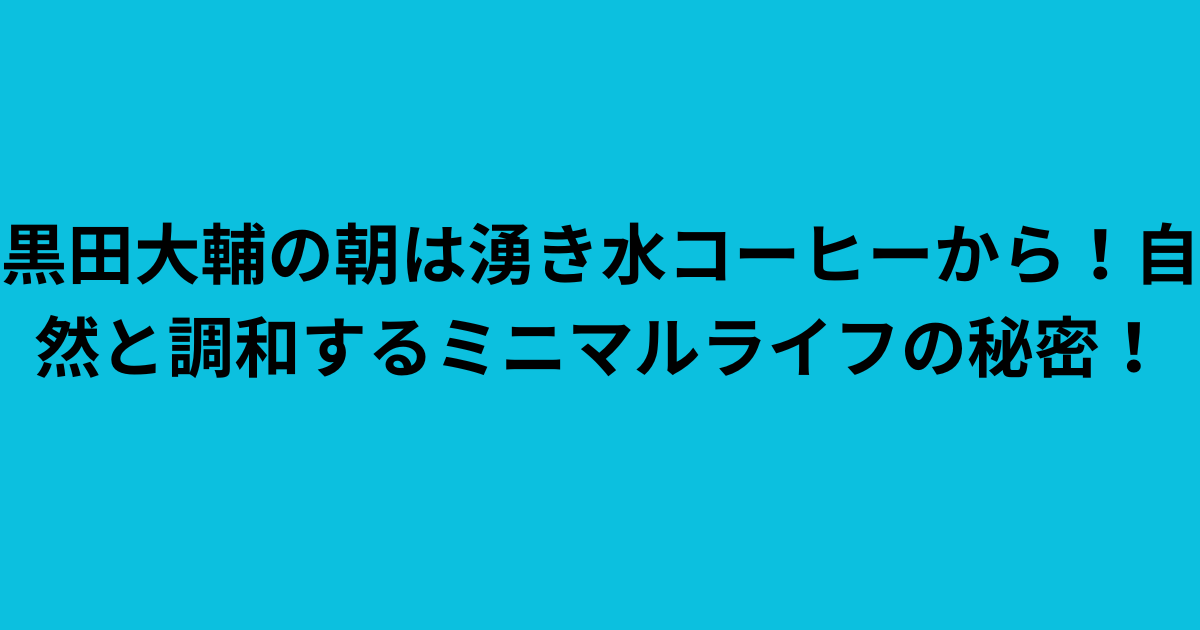 今回は、黒田大輔さんの【自然と調和する生活スタイル】を詳しく見ていきましょう。