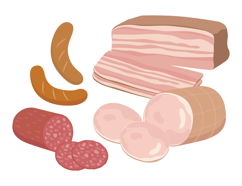 加工肉・赤肉:特に加工肉(ソーセージ・ハムなど)は、がん(たとえば大腸がん)との関係が明らかになっており、国際的に「発がん性あり」と分類されています。 ウィキペディア+2Cancer Research UK+2