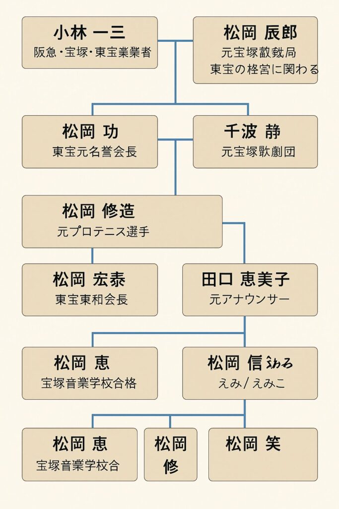 - 曾祖父:松岡辰郎(小林一三の次男、東宝経営)
