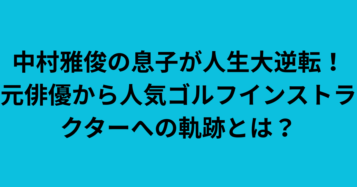 中村雅俊さんの息子・中村俊太さんは、俳優から人気ゴルフインストラクターへと人生の大逆転を果たしまし