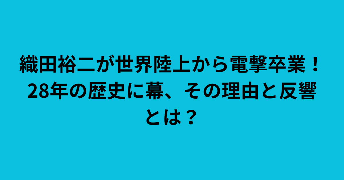 今回は、織田裕二さんと世界陸上との長い歴史、卒業宣言の詳細、そしてその理由と今後の展望について詳し
