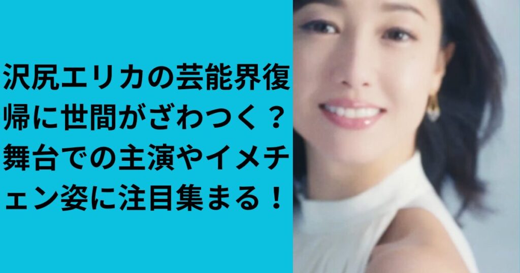 舞台での華麗な復帰が話題になっている女優・沢尻エリカさん。 そんな沢尻エリカさんですが、かつての不祥事を経ての芸能界復帰ということで、世間の注目が集まっていま す。 今回は、彼女の復帰までの経緯や舞台での活躍、外見の変化などについて詳しくご... -