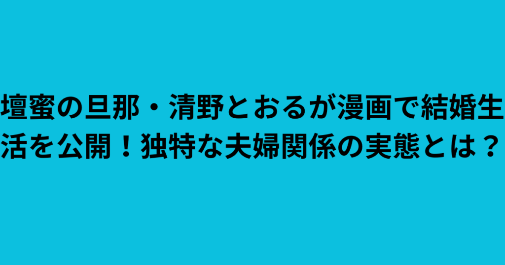 独特な魅力で多くのファンを魅了する壇蜜さん。 そんな壇蜜さんですが、その結婚生活が漫画で公開されるという驚きの展開を迎えているのでしょうか。 壇蜜と清野とおるの結婚 出典:X 芸能界きっての知性派タレントとして活躍する壇蜜さん。 そんな壇蜜さ...