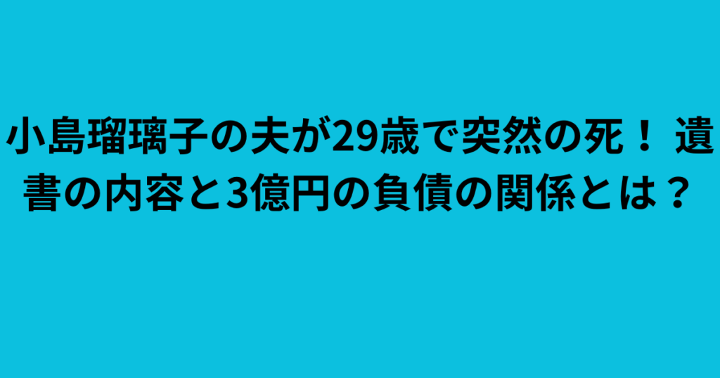 小島瑠璃子の夫が29歳で突然の死! 遺書の内容と3億円の負債の関係とは?