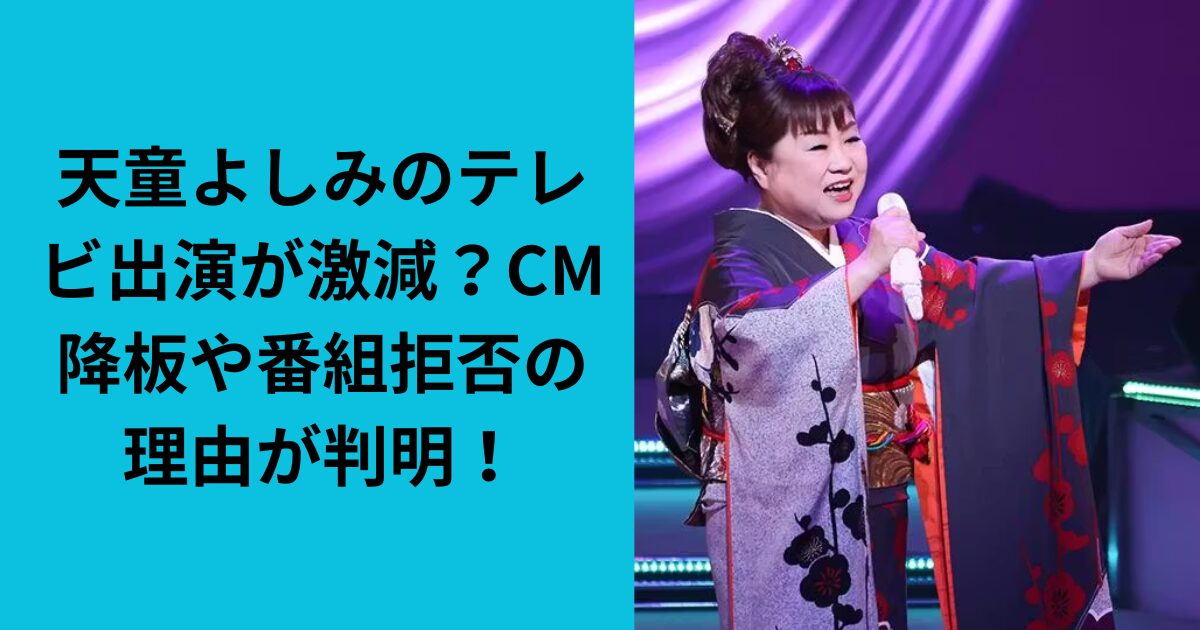 天童よしみさんのテレビ出演が激減している理由としては、CM降板や番組のキャンセルといった露出の変化