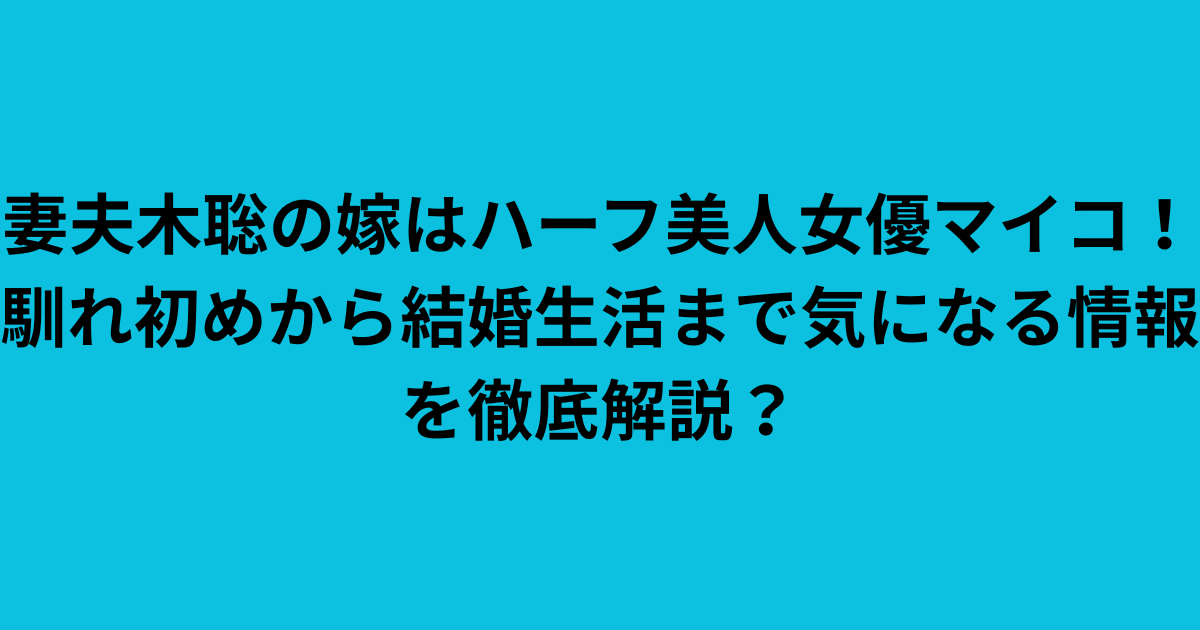 今回は、妻夫木聡さんの嫁であるマイコさんについて、プロフィールから馴れ初め、そして現在の結婚生活ま