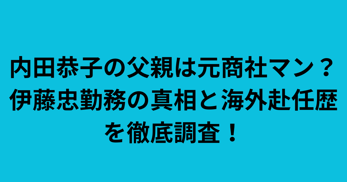 今回は、内田恭子さんの父親について、その職業や伊藤忠商事との関係、さらには海外赴任歴や家族背景まで